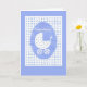Um cartão bonito de Parabéns brancos e azuis para o nascimento de um novo bebê, com um design de ameixa antiquado, de uma colagem de papel de Judy Adamson. Por favor, sinta-se à vontade para mudar a mensagem de dentro se você estiver junto e me contate através da minha loja para mudar o texto do cobrir frontal.