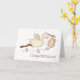 Um cartão de boas-vindas de uma nova bebê, feito em branco, com fundo rosado polka pontilhado, com gráficos adoráveis de uma cegonha voadora, segurando um bebê empacotado. Um suporte de corações flutuava sob a cegonha e um texto marrom personalizável abaixo lê, Parabéns. Bonito dentro final, com saudação e um lugar para o seu nome. Personalize todo o texto para dizer o que quiser. É uma maneira maravilhosa de dar boas-vindas a uma nova menina.