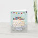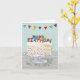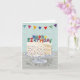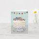 Cartão de aniversário bonito com um bolo de camada de confete e um feliz aniversário soletrado em velas