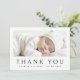 Novo cartões de agradecimentos de bebê com sua foto e o nome e a data de nascimento do bebê na frente. Mensagem personalizada no verso. Alterar cores e fontes, mover e redimensionar elementos na ferramenta design.