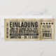 cartão novo de convite a 40. Aniversário com os desenhos dum bilhete antigo com código de sem.