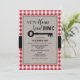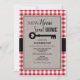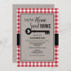 Trendy e fofo gingham vermelho e design de papel kraft com uma chave clássica de esqueleto para esses novos convites de festas caseiros, de lar