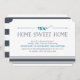 O convite de festas moderno e na moda apresenta "New Home Sweet Home" no marinho e na tipografia azul de lagoa, com uma borda riscada em azul-marinho empoeirado. Personalize com os detalhes do seu partido em correspondência de marinhos e letras de laguna.