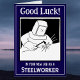 Boa sorte no seu novo trabalho como Steelworker. Ilustração do Steel Worker. Personalize com a sua escolha de texto e mensagem dentro. Cartão Boa Sorte para um Trabalhador de Aço, Steelworker ou Metalworker.