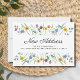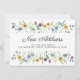 Este cartão de anúncio em movimento floral é decorado com flores silvestres de cor aquosa delicadas e verde em tons pastéis. Diz New Address na tipografia de na moda. Facilmente personalizável. Original Watercolor © Michele Davies.