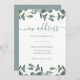 Essas mudanças simples e modernas de cartões de endereço apresentam folhas verdes de folhagem de cor aquática de eucalipto em um fundo branco limpo com um roteiro manuscrito moderno que diz "novo endereço". A maneira mais na moda para deixar amigos e familiares saberem que se mudaram.