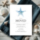 Celebre a sua nova casa costeira com o nosso belo Anúncio de Movimentação de Novo Endereço, com um espantoso peixe-estrela a aquarela, pintado à mão pela talentosa Victoria Grigaliunas. Perfeito para casas de praia, esses novos convites de endereço capturam a beleza serena da vida à beira-mar. Nossa mudança de cartões de endereço é projetada com um charmoso peixe-estrela de aquarela, adicionando um toque de elegância costeira ao seu novo anúncio de moradia residencial. Avise aos amigos e à família que se mudou com este encantador guardião que combina arte com praticidade. Impresso profissionalmente no estoque de cartão premium para garantir cores vibrantes e uma sensação luxuosa, cada placa pode ser personalizada com seus novos detalhes de endereço para torná-la exclusivamente sua. Descubra o papel de coordenação em https://www.zazzle.com/collections/starfish_moved_to_the_beach-119285114285268932