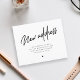 Simples anúncio em movimento de um novo roteiro de caligrafia de endereço preto e branco, elegante e minimalista. ++++++++ Fácil de personalizar com seu novo endereço residencial! +++++++++ LEIA ISTO ANTES DE COMPRAR! Este é um cartão de casamento de barato orçamentário impresso em uma folha de papel (cada folha tem um cartão). +++ Para obter a melhor qualidade de preço, nosso conselho é escolher o tipo de papel Semi-Gloss (é espesso o suficiente para ser usado para papelaria) +++ Se você precisar de envelopes, escolha a OPÇÃO ENVELOPE. ++ Verifique duas vezes todas as informações e a ortografia do seu texto porque você receberá exatamente o que você vê - ninguém mais verificará nada antes de imprimir. +++ Esta placa foi projetada para o tamanho de 4,5" x 5,6". Caso você escolha outro tamanho do cartão e o texto saia da página, tudo precisa ser corrigido antes de adicionar o produto ao carrinho. Peça ajuda ao Serviço de Design ao Vivo.