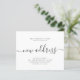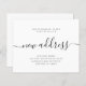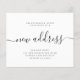 Simples e elegante anúncio de caligrafia de caligrafia de endereço preto e branco novo e elegante. ++++++++ Fácil de personalizar com seu texto e novo endereço residencial. +++++++++ LEIA ISTO ANTES DE COMPRAR! Este é um cartão de casamento de barato orçamentário impresso em uma folha de papel (cada folha tem um cartão). +++ Para obter a melhor qualidade de preço, nosso conselho é escolher o tipo de papel Semi-Gloss (é espesso o suficiente para ser usado para papelaria) +++ Se você precisar de envelopes, escolha a OPÇÃO ENVELOPE. ++ Verifique duas vezes todas as informações e a ortografia do seu texto porque você receberá exatamente o que você vê - ninguém mais verificará nada antes de imprimir. +++ Esta placa foi projetada para o tamanho de 4,5" x 5,6". Caso você escolha outro tamanho do cartão e o texto saia da página, tudo precisa ser corrigido antes de adicionar o produto ao carrinho. Peça ajuda ao Serviço de Design ao Vivo.