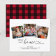 Não há lugar como casa para as férias. Avise os amigos e a família sobre sua mudança nesta temporada de festas com esta colagem de três fotos com xadrez de búfalos vermelho e preto rústico. Personalize este anúncio comovente de feriado com as suas 3 fotos, nome e novo endereço favoritos. COPYRIGHT © 2020 Judy Burrows, Black Dog Art - Todos Os Direitos Reservados. Novo feriado residencial 3 Anúncio de movimentação de fotos