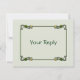 Parte da Série de Casamento Nouveau Lilies da TheMarryingType, este cartão de RSVP personalizável em verde suave captura elegantemente a beleza e o romance do Art Nouveau. Fica melhor impresso em papel de feltro de cor creme.