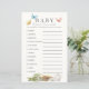 Este elegante "um novo capítulo começará em breve" cartão de jogos de palavras/chás de fraldas apresenta um fundo creme com pilhas de livros, borboletas, buquê de flores, bule e chá em aquarela. O verso apresenta um fundo creme com padrão floral. Personalize-o para as suas necessidades. Você pode encontrar produtos correspondentes na minha loja. Respostas : 1. FRALDA 2. EMBALAGEM 3. ROLADOR 4. ANIMAL ALIMENTADO 5. ROUPA 6. TEDDY BEAR 7. RÁCIO 8. ENFERMEIRO 9. FRASCO 10. FÓRMULA 11 LEITE 12. CRADLE