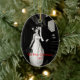Um adorável ornamento oval com uma fotografia personalizada. O texto vermelho diz, Nosso Primeiro Natal 2010. Personalize com sua própria foto de casamento na frente e atrás. Um maravilhoso ornamento de guardar memória para os recém-casados.