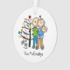Um adorável ornamento acrílico de vara de Natal apresenta um novo papai de vareta e mãe segurando um bebê em um cobertor azul e o gato da família em frente a uma árvore de férias decorada. Ele também tem uma área que você pode adicionar seu nome de família antes de fazer o pedido. O ornamento apresenta o mesmo design com uma área que você pode facilmente personalizar para dizer Natal de 2014 ou o ano atual. Esta bonitinha de palito de Natal, o ornamento acrílico será apreciado por anos!