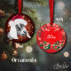 A mão pintou o retrato desta cabra de leite Nubiana fofa em seu Chapéu Santa - em um fundo vermelho profundo com flocos de neve de ouro cintilante. Enfeites de natal de Capa para a doação de presente de Férias, enfeites de árvore de Natal ou enfeites de janela- personalize a data no verso