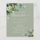 Um convite para casamento bilíngue verde-verde-oliva moderno, adicione os detalhes do convite em duas línguas, uma para cada lado.