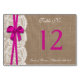 A coleção de arcos rosa rústica é um design com um adorável fundo de efeito de burlap rusticado com um romântico de efeito de renda branca vintage e um arco rosa espantoso. Estes cartões de tabela podem ser personalizados para sua ocasião especial e tornariam a mesa perfeita para seu casamento, chá de panela, festa de noivado, festa de aniversário e muito, muito mais. *Observe que o Zazzle só vende produtos impressos para que este item não tenha nenhum material real de burlap, rendas ou fita/ arco. *** COMO PEDIR *** Personalize e adicione cada placa de número de tabela ao seu carrinho, um a um. No momento, o Zazzle não tem um sistema que permita qualquer personalização dos produtos após um pedido ter sido feito.