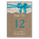 A coleção de casamento do arco azul rústico é um design impressionante que apresenta um adorável fundo de efeito de burvolta rústica com um romântico efeito de renda branca vintage e um espantoso arco azul. Estes cartões de tabela podem ser personalizados para sua ocasião especial e tornariam a mesa perfeita para seu casamento, chá de panela, festa de noivado, festa de aniversário e muito, muito mais. *Observe que o Zazzle só vende produtos impressos para que este item não tenha nenhum material real de burlap, rendas ou fita/ arco. *** COMO PEDIR *** Personalize e adicione cada placa de número de tabela ao seu carrinho, um a um. No momento, o Zazzle não tem um sistema que permita qualquer personalização dos produtos após um pedido ter sido feito.
