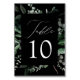 Cartões de mesa de casamento elegantes e botânicos com o número da tabela aninhados em um quadro retangular cercados por eucalipto, samambaias e outros ricos verdes com fundo preto. Personalize o número de cada placa de mesa e adicione-o ao seu carrinho. Projetado para coordenar com nossa coleção de casamento Abundant Greenery.