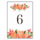 Numeração De Mesa Aguarela Abóboras e Folhas de Bordo na Mesa 6