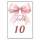 Personalize e seus números de tabela um a um. Um fundo branco decorado com um arco rosa.