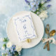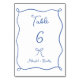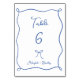 Número da Tabela de Casamento Whimsical Azul Francês, com um arco desenhado à mão e uma faixa ondulada e letra de estilo de escrita manual. Personalizar com nomes.