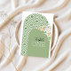 Lindos números de mesa com henna com impressão do Tatreez palestino em verde e arcos.