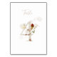 Um elegante design floral número 4 para todas as estações em várias matizes de creme, verde e burgundy, com um roteiro de caligrafia manuscrito, fará com que sua mesa de casamento seja um destaque. Ideal para jantadas de ensaio de casamento, depois de festas, chás de panela e muito mais.