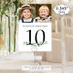Sinais personalizados de número da mesa de casamento com 2 fotos da noiva e noiva ao longo dos anos para entreter convidados. É divertido ter fotos da mesma idade no mesmo sinal e fotos diferentes em cada mesa que os hóspedes se misturam. Impresso em ambos os lados para visualização dupla. MUDANÇAS: a cor do texto preto pode ser alterada para ser coordenada com seu esquema de cores e o verde pode ser excluído se não for desejado. DICA DA FOTO: Escolha fotos com o assunto no meio e/ou pré-recorte em forma semelhante ANTES de carregar e usar a ferramenta CROP para ajustar a imagem dentro da área do modelo. ASSISTÊNCIA: para obter ajuda com a modificação ou personalização do design, alteração de cor, redimensionamento ou transferência do design para outro produto, entre em contato com o designer ANTES DE ENCOMENDAR através da guia MENSAGEM de Bate-papo Zazzle abaixo ou envie um email para makeitaboutyoustore@gmail.com.