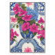 Belo cartão de número de mesa de casamento na Costa Amalfi Itália Mediterrâneo, com azulejos azuis, buganvílias, em aquarela e moldura azul.