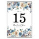 Cartões de número de mesa florais elegantes com flores de aquarela brancas, bege e azuis, complementadas por folhas verdes exuberantes na parte superior e inferior, enquadrando o número da mesa, nomes e data do casamento em ambos os lados. Os cartões de número de mesa florais foram projetados para combinar com nossa coleção de casamento Blooming Beauty. Adicione cada cartão de número de mesa ao seu carrinho individualmente.