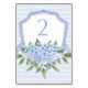 Numeração De Mesa Blue Hydrangea Watercolor Crest