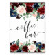 Chuveiro sofisticado de guirlanda floral em aquarela, sinalização de "Café Bar" para aniversário ou recepção com cabeçalho pintado à mão em vermelho marsala burgundy e rosa rosado com flores de acento em azul naval adornadas com louro botânico e vermelho escuro. Da coleção "Boho Bloom", este layout incorpora flores silvestres boêmias ricas com florações radiantes e folhagem verde de eucalipto. Para outras cores ou produtos correspondentes, visite a loja JustFharryn Zazzle, ou entre em contato com o designer, c/o Fharryn@yahoo.com Todos os direitos reservados. #bohochic #zazzlemade