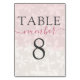 O padrão de flor selvagem de Boho foi colocado sobre um fundo texturizado de cor d'água. O texto grande está nas cinzas e o texto menor está em um adorável rosa escuro para complementar o fundo branco e bege. Criar cada número de tabela separadamente