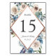 Cartão de Número de Tabela de Casamento Dourado Rosa Floral Azul Boho Dusty