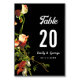 Estes elegantes números de mesas florais são perfeitos para um casamento floral de verão moderno. A design romântica apresenta flores de aquarela com elegante tipografia branca sobre fundo preto em negrito.