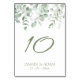 Boho Greenery Foliage Eucalyptus Número Da Mesa De Casamento. Imprime estigmaticamente seus convidados de casamento com este elegante número da mesa de casamento com lindas folhas verdes de eucalipto em um fundo branco nítido. Este número da mesa de casamento tem uma bela design de folhagem verde, com vibrações rústicas e botânicas, perfeita para o seu casamento rústico, verde ou eucalipto. A disposição mínima e moderna chama a atenção para os arranjos elegantes, verdes, de folhas de eucalipto, estabelecidos sobre um fundo minimalista com uma delicada fonte verde-escura. Este número da mesa de casamento vai dar o tom de um belo cenário de casamento rodeado de verde prata ou de decoração de casamento verde sábio. Uma adição perfeita a qualquer celebração botânica ou rústica.