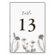 Mande seus convidados em estilo com esses números elegantes da mesa de casamento. Apresentando uma arte feita à mão de uma linha de flor silvestre sobre um fundo texturizado branco macio, eles adicionam um toque natural e moderno à sua mesa. Ideal para casamentos rústicos, de vassoura ou de jardim.