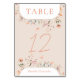 Boho Wildflower Número da Mesa Casada. Flores de cor-de-água cor-de-rosa doce e romântica, com fundo bege neutro.