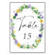Este é um cartão de número de tabela com tema "boho wildflower" e verde. O desenho apresenta uma coroa de flores silvestres de primavera, incluindo os daffodilos amarelos, os pavimentões roxos, os tremoços, os pântanos, os dandélions, as tulipas, a samambaia e a viticultura. Inclui também algumas aves-vivas e uma libélula doce. Personalize o número da tabela conforme necessário. Entre em contato com o designer para obter informações sobre este design ou sobre produtos correspondentes que não estejam disponíveis.