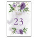 elegante personalizável cartão de número da tabela plana roxa e flores brancas com alguns cartões de número da tabela folhas verdes Os detalhes da brilha são simulados