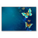 Numeração De Mesa Borboletas de ouro em um fundo azul
