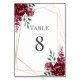 Número personalizável da mesa de casamento em branco limpo. Apresentando burgundy, marsala, buquê floral de carmim com uma estrutura geométrica de ouro.