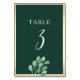 Este número da mesa de casamento inspirado na natureza apresenta um design rústico, mas elegante, combinando sofisticação moderna com encanto de vassoura. Adorado com a folhagem de eucalipto com aquarelas e sotaques dourados brilhantes, ele mostra um simples roteiro de caligrafia em um verde esmeralda rico. Perfeito para uma celebração refinada e relaxada.