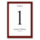 Um cartão clássico de burgundy e de mesa de casamento branca que pode ser personalizado com qualquer número de tabela. Os gráficos aparecem em ambos os lados desta placa.