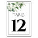 Esta sofisticada carta de números da mesa de casamento mostra uma bela combinação de verde-sábio e flores brancas. No canto superior esquerdo, um galho gracioso embelezado com flores brancas e folhas verdes de sábio cria um ponto focal cativante. O texto do cartão é apresentado numa tipografia arrojada e atraente, reforçando ainda mais a elegância geral deste design.
