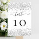Frente: Um fundo branco decorado com falso cintilação prateada Trás: um fundo prateado falso decorado com falso brilho, faíscas. Personalize e adicione seus números de tabela. Adicione seus números um a um.