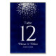Esta moderna placa de número de tabela de chic tem um borrão de brilho prateado em um fundo azul real profundo. Você pode personalizá-lo indo para o menu personalizar. Isto é parte de uma suite de casamento clássica com muitas peças correspondentes.