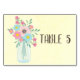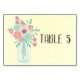 Buquê floral country em jarra de mason em fundo texturizado. Personalize com informações da mesa / evento na frente e atrás