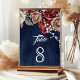 Numeração De Mesa Burgundy Red Roses Floral Navy Blue Wedding